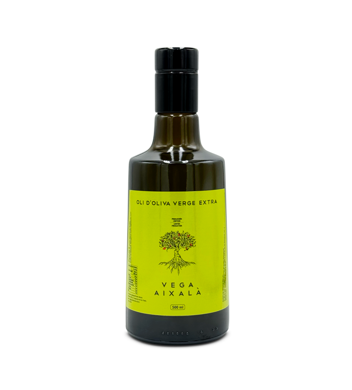 Importowana przez nas hiszpańska oliwa z organicznych oliwek odmiany Arbequina uprawianych w miejscowości Vallclara w Terragonie, w Katalonii na wysokości 800 m. n.p.m. wytwarzana przez Evę Vegę z winnicy VEGA AIXALA.